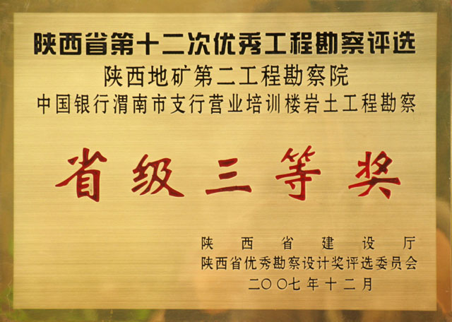 省第十二次優(yōu)秀工程勘察評選省級三等獎