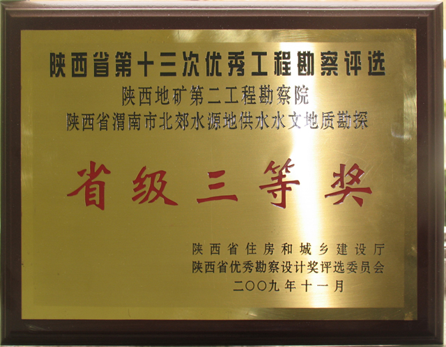 省第十三次優(yōu)秀工程勘察評選省級三等獎