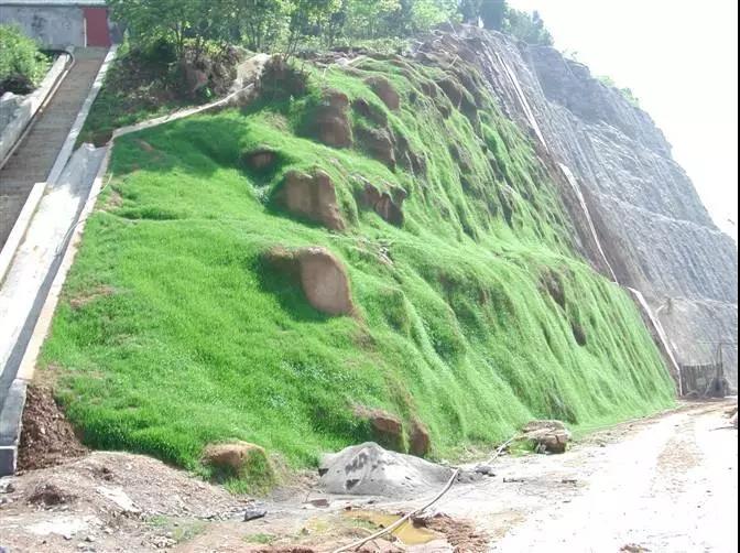 所謂植被混凝土護(hù)坡綠化技術(shù)也就是俗稱(chēng)的在石頭上種草。它是采用特定混凝土配方和混合植綠種子配方,對(duì)巖石邊坡進(jìn)行防護(hù)和綠化的一種新技術(shù)。由于這種混合料既有草種,又以水泥作為黏結(jié)劑,因此被形象地稱(chēng)為植被混凝土。