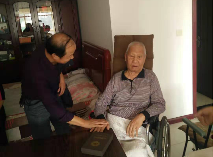 9月22日上午,公司咨詢員李萬(wàn)生、張巍和黨群工作部工作人員的陪同下,前往山西省臨汾市看望建國(guó)前老黨員老干部邰懷民、羅嘉祥兩位老同志,將紀(jì)念章送達(dá)到兩位老同志的手中。老同志堅(jiān)持坐起來(lái),并穿戴整齊,在接過(guò)紀(jì)念章那一刻,兩位老同志心情激動(dòng)都流下了熱淚,并表示感謝黨和國(guó)家還記著他們想著他們。