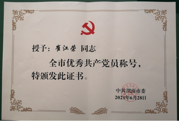 我公司崔江榮同志榮獲“全市優(yōu)秀共產(chǎn)黨員”稱號(hào)。(高岑)
