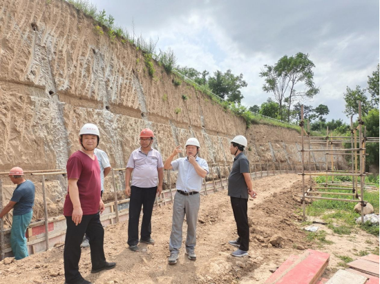 8月3日至8月6日,公司黨委書記、執(zhí)行董事安林帶領(lǐng)公司安全環(huán)保部工作人員赴寶雞、安康野外施工一線,分別對我公司承擔(dān)施工的《隴縣城關(guān)鎮(zhèn)小溝村滑坡綜合治理工程》、《麟游縣招賢鎮(zhèn)閣頭寺小學(xué)滑坡治理工程》、《扶風(fēng)縣絳帳鎮(zhèn)北呂村崩塌治理工程》、《嵐皋縣城關(guān)鎮(zhèn)祖師廟滑坡(屋場坪)治理工程》、《石泉縣武警中隊(duì)后山滑坡防治工程》、《石泉縣城關(guān)鎮(zhèn)皂角樹西側(cè)滑坡治理工程》、《石泉縣喜河鎮(zhèn)晨光村索道橋口滑坡治理工程》、《平利縣老縣鎮(zhèn)馬安山安置區(qū)滑坡點(diǎn)隱患治理項(xiàng)目》等多個(gè)地質(zhì)災(zāi)害治理施工項(xiàng)目進(jìn)行現(xiàn)場指導(dǎo)和安全檢查。