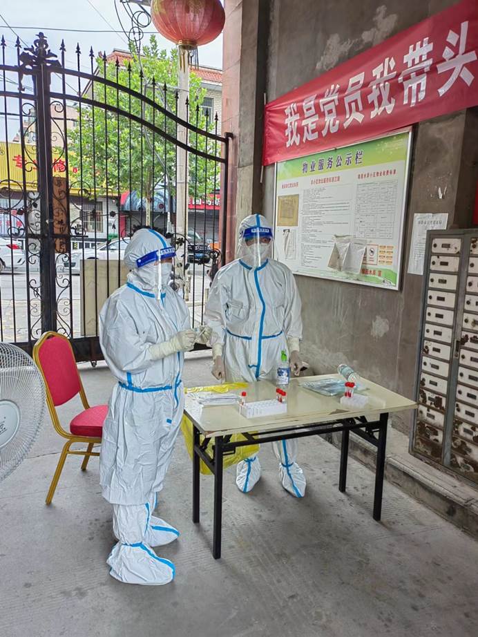 公司在渭南、商州高風(fēng)險(xiǎn)區(qū)及中高風(fēng)險(xiǎn)區(qū)的黨員職工也聞令而動(dòng)、聽令而行,在嚴(yán)守當(dāng)?shù)胤酪哒叩耐瑫r(shí),變身“大白”迅速投身疫情防控重點(diǎn)區(qū)域開展疫情防控工作,沖鋒在第一線,戰(zhàn)斗在最前沿助力全員核酸檢測(cè),以奉獻(xiàn)詮釋信念,用實(shí)際行動(dòng)彰顯了黨員干部的擔(dān)當(dāng)作為。