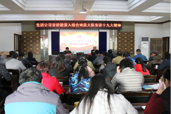 11月28日,集團(tuán)公司宣講團(tuán)成員、九〇八地質(zhì)大隊(duì)黨委書(shū)記王戰(zhàn)鋒深入綜合地質(zhì)大隊(duì)宣講黨的十九大精神,報(bào)告會(huì)在隊(duì)地質(zhì)科研中心二樓會(huì)議室召開(kāi)。隊(duì)黨委書(shū)記、隊(duì)長(zhǎng)安林主持報(bào)告會(huì)。